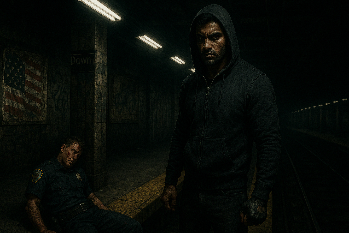 Rashid stood over the fallen police officer, a cruel smile twisting his features as he reveled in his victory. The officer’s body twitched with shallow gasps. His eyes, wide with horror, met Rashid’s, but found no mercy there.