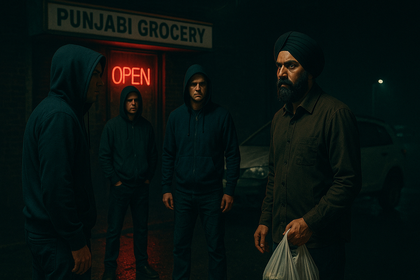 Jaspreet froze. The parking lot suddenly felt smaller. He clutched the grocery bag tighter, fear hammering in his ears.